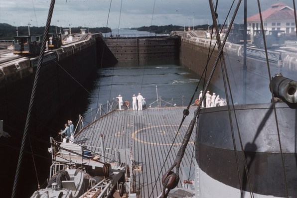 USS Edisto - GB2 - heads west through the Panama Canal toward the Pacific.