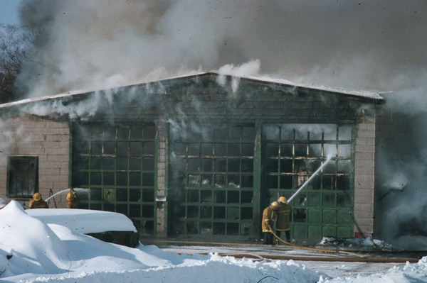 down the house... Claremont & Concord Railway enginehouse goes up in