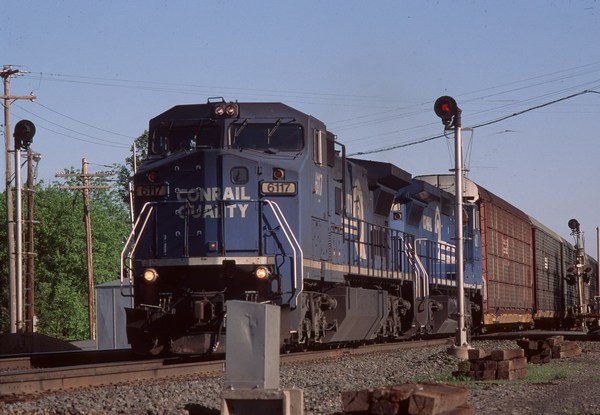 NYS&W stack train approaching Gulf Summit, PA. ___________ ____________________________ Penn Central E-8 at Buffalo, NY.