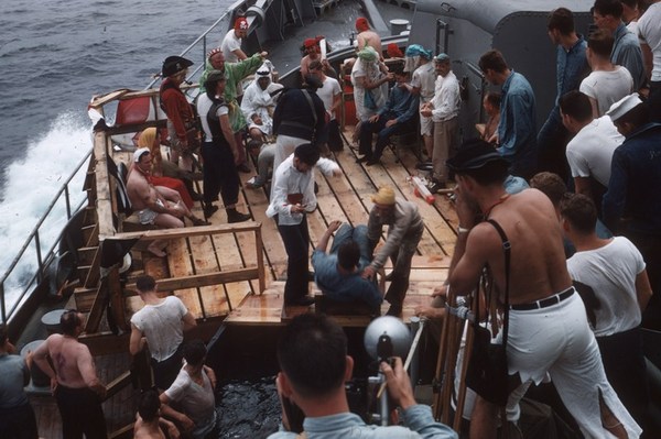Pollywogs get turned into shellbacks as they pass the equator. ___________ ___________Unloading equipment on the Ross ice shelf.________