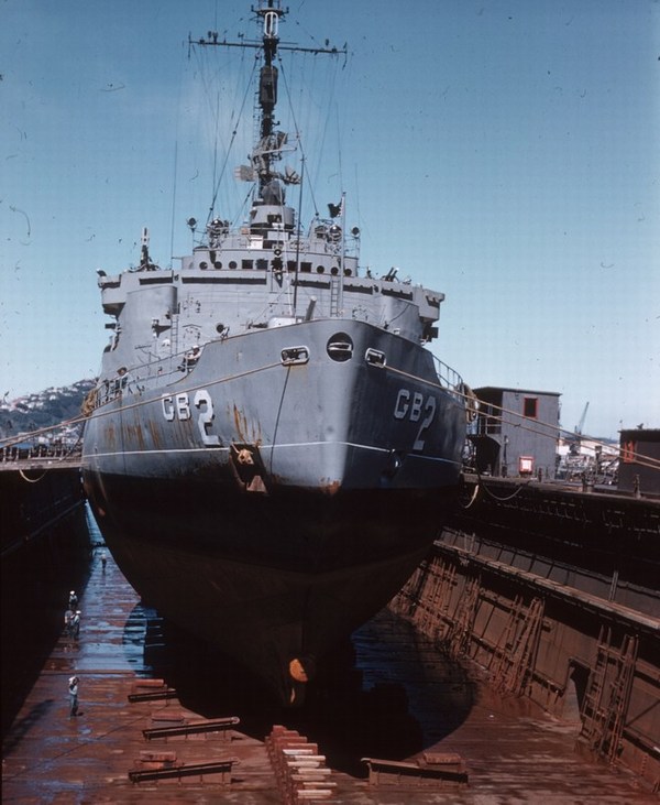 The Edisto sits in drydock in New Zealand for repairs on the voyage